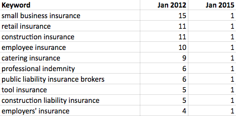 Simply Business also saw ranking improvements for other commercial terms, too. Here’s a small sample: