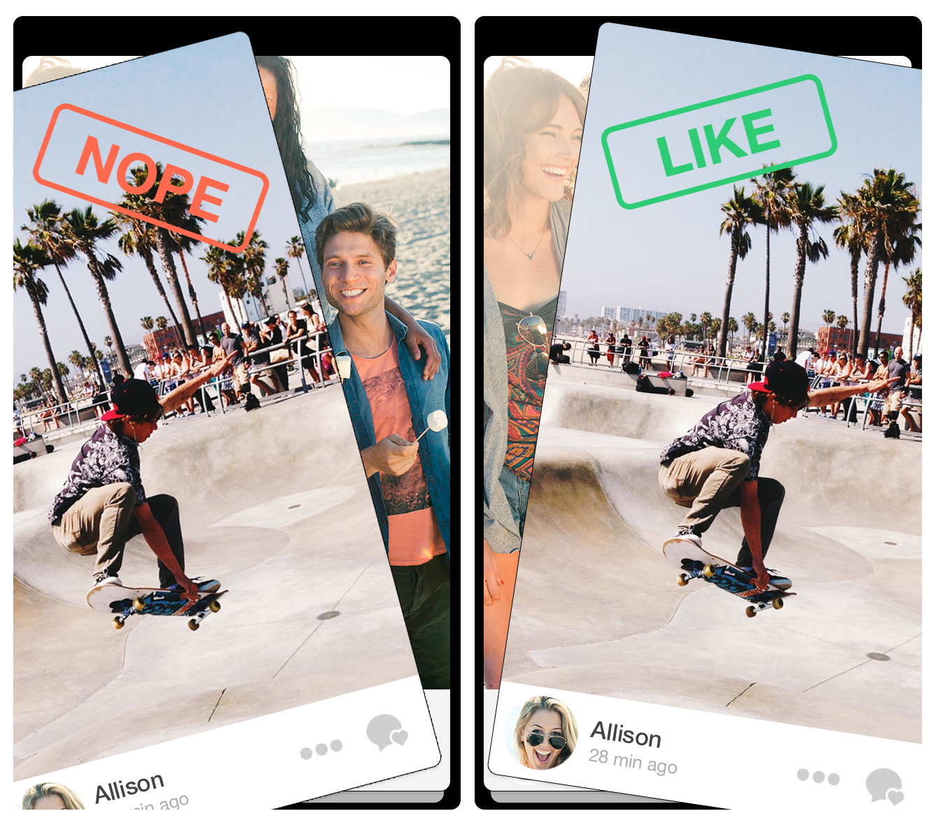 - Connect with them on the basis of shared friends or interests (this is the social proof aspect of Tinder’s interface); and