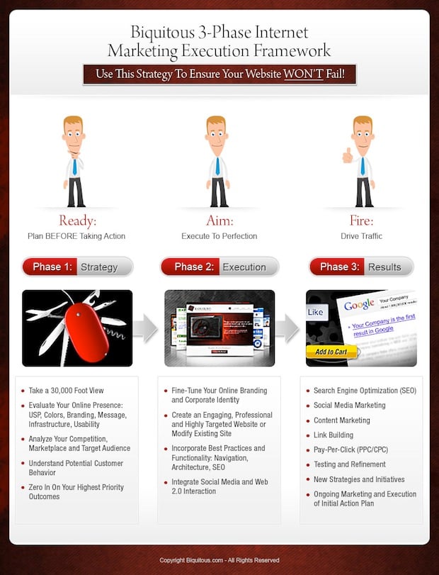 We call this approach our Three-Phase Internet Marketing Execution Framework: