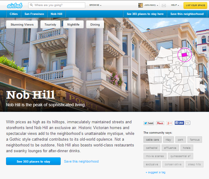 "The Airbnb Neighborhoods were created to help guests visiting a certain city finding the right place to stay. Where hotels tend to be concentrated in one part of town, Airbnb's are more spread out. We have found that the Neighborhoods are not only helping our guests to find the right place which matches their interest, but also help the cities to see guests traveling to parts of those cities which usually are overlooked by tourists. This has had a profound economic impact on local businesses, and their Neighborhoods.