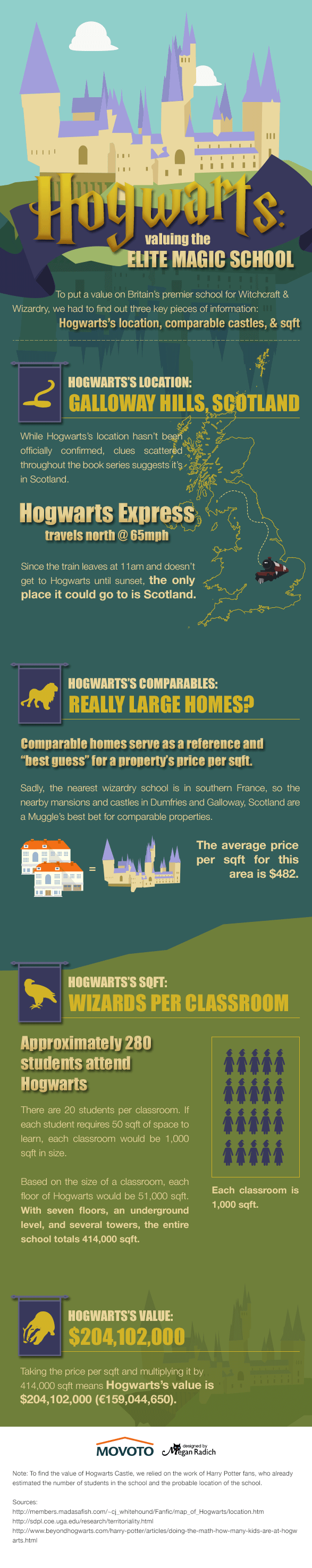 Their most successful content takes some type of pop-culture reference or hot topic, applies it to real estate, and then earns press from both big news sites and mid-level authority blogs. The Harry Potter Hogwarts Property Evaluation Infographic may be the best example of this strategy in action: