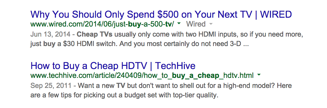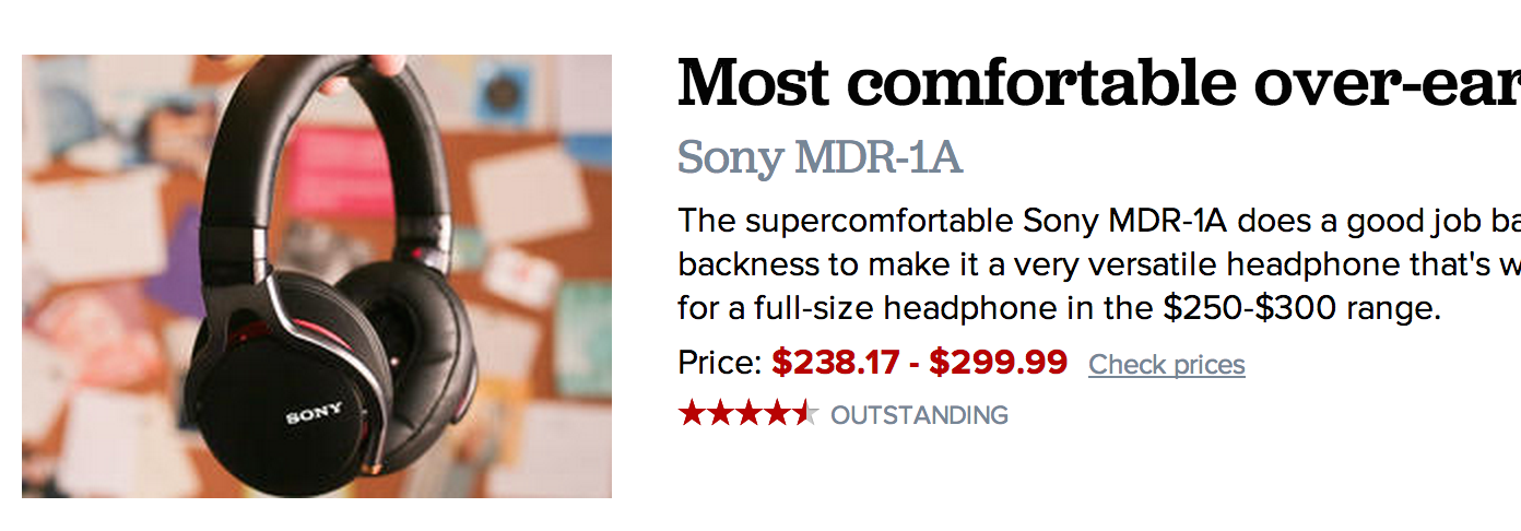 If we go back to my first example, best headphones, the results are dominated by content that compares ratings and pricing for various headphones.
