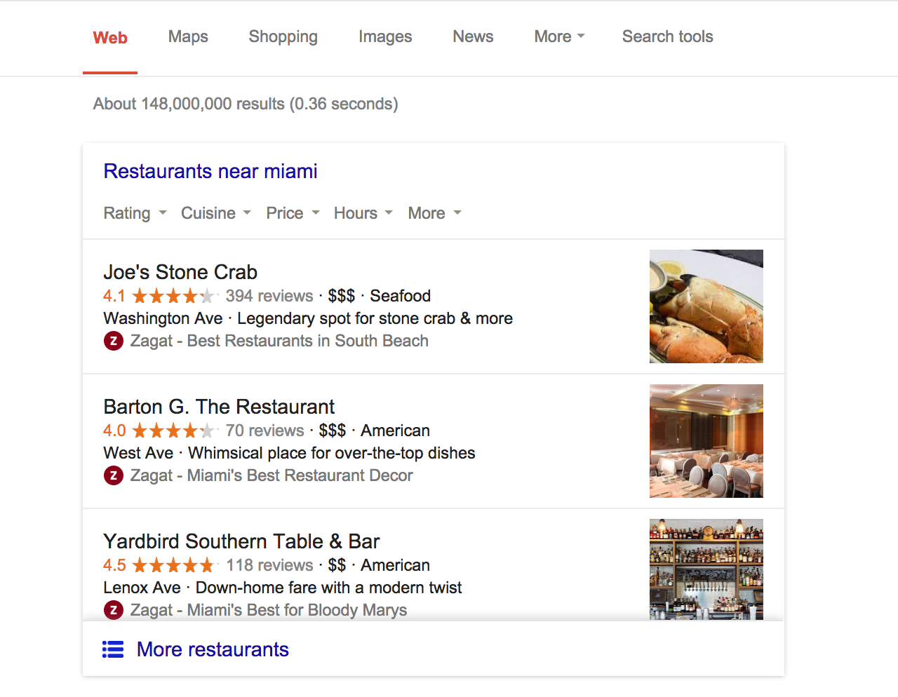 As a matter of fact, the results above the fold are tied to review aggregators and Zagat ratings.