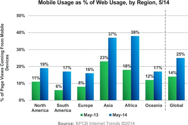 Globally, the percentage of page views coming from mobile devices has jumped substantially in the past year, and accounts for almost one-fifth of North American page views. Critics will argue that desktop usage has not substantially decreased, and that’s true, but the problem is this – as mobile gets to be a larger piece of the picture, we’re seeing less and less of that picture by excluding mobile data.