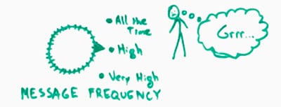 It's not just the value of the messaging. It's the frequency that it happens at. You've seen this. I'm on an email list that I signed up for, I think it's called FounderDating. It's here in Seattle. I think it's in San Francisco. I thought it was a really cool idea when I signed up for it. Then I have just been inundated with messages from them. I think some of them are actually worthy of my participation, like I should have gone to the forum. I should have replied. I should have checked out what this particular person wanted. But I get so much email from them that I've just begun to hit Delete as soon as I get it.