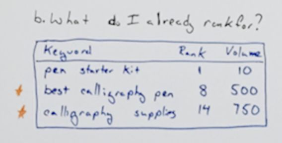 So a second question you can ask is, "What do I already rank for?" Well, let's say the client has an existing website. They sell some pens. Maybe they do well, maybe they don't.