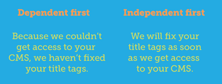 If you want to sound confident and decisive, lead with an independent clause instead of a dependent one (like I did here).