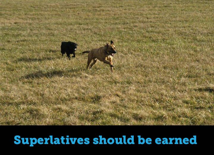 SUPERLATIVES ARE THE MOST EFFECTIVEST TOOL YOU CAN USE EVER (until you wear your reader out or lose their trust). Superlatives (think "best," "worst," "hairiest" – any form of the adjective or adverb that is the most exaggerated form of the word) are one of the main problems with clickbait headlines (the other being the failure to deliver on those huge promises).