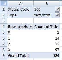 Of course, the beauty of pivot tables is that I can double click each of those rows and see which pages are contained within each level. This is of course, a pretty basic application of the data. But you see that once you start getting more data you can do more powerful things.