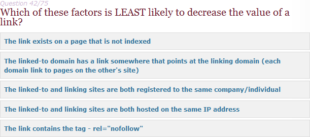 There are thousands of sites that are hosted on the same IP address, and statistically, this situation is way too common for Google to perform any kind of computational analysis on the IP address of every link it crawls. Therefore, choice D is least likely to decrease the value of a link.