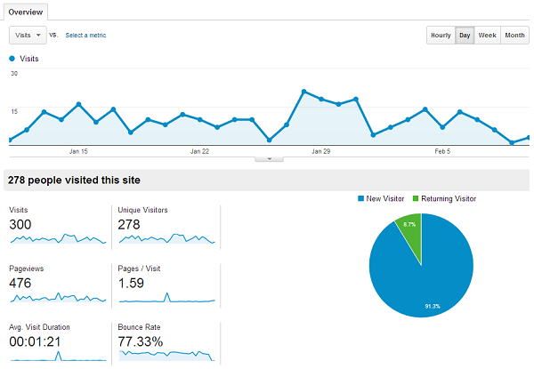 Similar to the point about testing for bounces instead of sales... It would be nice if you could start to optimize your checkout page or your contact form, but whilst you have very little traffic this may not be feasible.